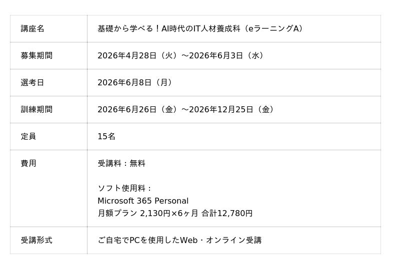 【カリキュラム詳細】 https://job-training.jp/wp-content/uploads/2026/03/IT_2606.ooita_.pdf