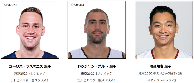 2023年9月に開催された『3x3.EXE PREMIER 2023 PLAYOFFS』にて優勝、東京2020オリンピックで3x3日本代表として活躍した落合知也選手率いるALPHAS.EXEを筆頭に、準優勝のSHINAGAWA CC WILDCATS.EXE、3位にオーストラリアのALICE SPRINGS CENTRALS.EXEなど強豪チームが出場いたします。加えて今大会は海外からの特別招待チームとして、東京2020オリンピックでラトビア代表を金メダルに導いた、ラトビア個人ランキング1位のカーリス・ラスマニス選手や、同大会セルビア代表で銅メダルを獲得したドゥシャン・ブルト選手擁するスイスのLAUSANNE(ローザンヌ)をはじめ、世界ランキング男子1位のセルビアより、3x3.EXE PREMIER でもUTSUNOMIYA BREX.EXEで活躍したドゥサン・サマルジッチ選手率いるSAJMISTE SERBIA(サイミシュテ セルビア)、カナダ個人ランキング2位のビクラムジート・ギル選手率いるTORONTO PATORIOTS(トロント ペイトリオッツ)の、計3チームが出場します。