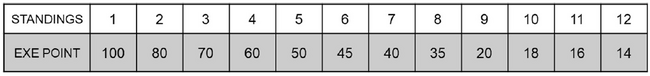 Round.1~3の各ラウンド順位によって、チームには下記の通り「EXE POINT」が付与され、Round.3終了時点の総合成績に応じてFINALの組み合わせを決定する。