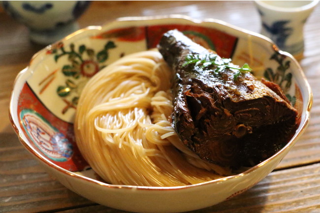 昼食は人気の観光スポット、黒壁スクエアにある郷土料理店へ。名物の焼き鯖そうめんをいただきます。