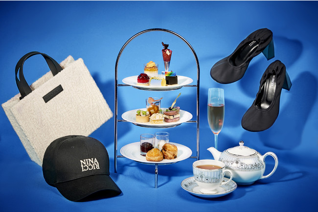 通常のアフタヌーンティーの他に、世界最古のシャンパーニュメゾン「ルイナール」のグラスロゼシャンパーニュと、ニナ リッチのバケットハットをモチーフにしたクッキーとマカロンのお土産が付いたプランもございます。またシャンパーニュ付きプランをご利用いただいた方には、数量限定でニナ リッチのロゴ入りトートバッグをプレゼントいたします。