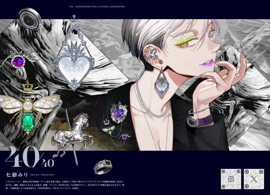 描き下ろしカバーイラストを手がけたのは、美しい装飾物を纏う凛としたキャラクターを細密かつ大胆に描くイラストレーター「七癖みり」氏。