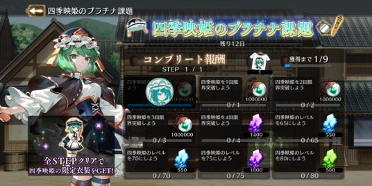 [楽園の最高裁判長]四季映姫・ヤマザナドゥは、願掛けと同時開催中の『四季映姫のプラチナ課題』をコンプリートすることで、専用の衣装「白黒分明」が手に入ります。