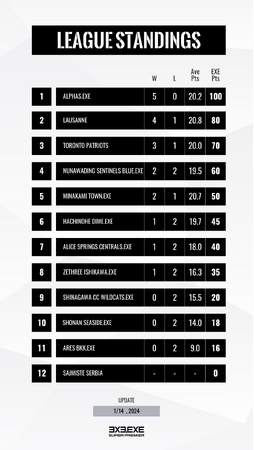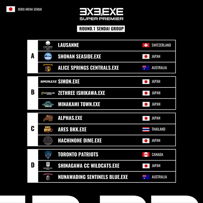2024年1月13日、14日に開催された3人制バスケットボールの新たなグローバルプロリーグ「3x3.EXE SUPER PREMIER」のROUND.1 開幕戦が、宮城県仙台市のゼビオアリーナ仙台で開催され、3x3.EXE PREMIER 2023 PLAYOFFS王者のALPHAS.EXEが優勝いたしましたので、お知らせ致します。