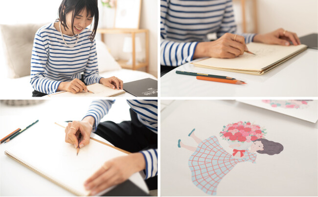 これまでの取引先として、ポプラ社、資生堂、三菱鉛筆、銀座蔦屋書店、阪神梅田本店などのイラストレーションを製作。イラストレーションを通して、「世の中に胸キュンなものをもっと増やしていきたい」という気持ちで活動している。