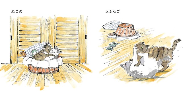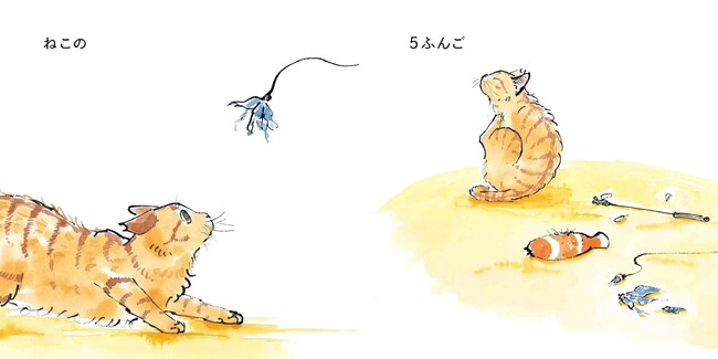 見ていなかった5分、1時間でこんなことに!という猫たちの姿を描いた、猫愛あふれる絵本。