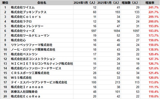 ・2024年1月時点と2025年1月時点の従業員数を比較