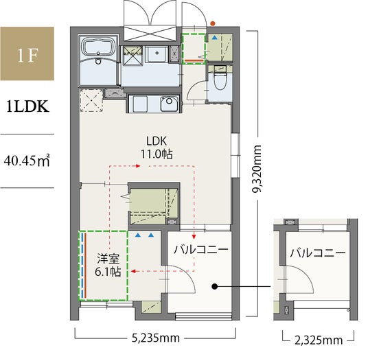 住戸間取り : 1LDK(40.45平方メートル )