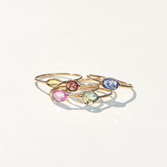 鮮やかな色合いのサファイアを、天然石の美しさを存分にお楽しみいただけるよう、K14の地金でシンプルなリングに仕上げました。