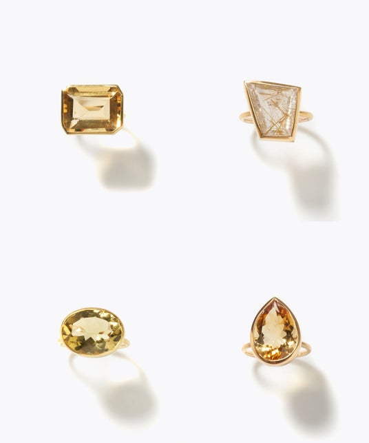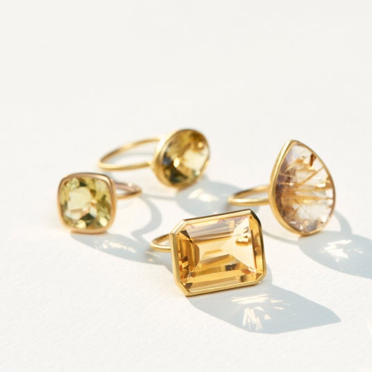 様々なカットが施されたシトリン、ルチルクォーツ、そしてレモンクォーツがラインナップ。大振りのカラーストーンの魅力を存分に引き立てるため、洗練されたシンプルなデザインに仕上げました。