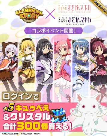Studio Z株式会社(本社:東京都港区 代表取締役CEO:池幡 賢) が運営しております 共闘対戦 爽快パズル消しゲー『エレメンタルストーリー』は、2024年2月15日(木) ~ 2024年2月29日(木) にて、『劇場版 魔法少女まどか☆マギカ[前編]始まりの物語/[後編]永遠の物語』、『劇場版 魔法少女まどか☆マギカ[新編]叛逆の物語』とのコラボキャンペーンを開催いたします。