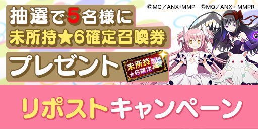 エレメンタルストーリー公式X(旧Twitter @elementalstory)をフォロー、2月15日(木) 18:00に投稿された該当のポストをリポストすることで、抽選で5名様に「未所持★6確定召喚券」をプレゼントいたします。
