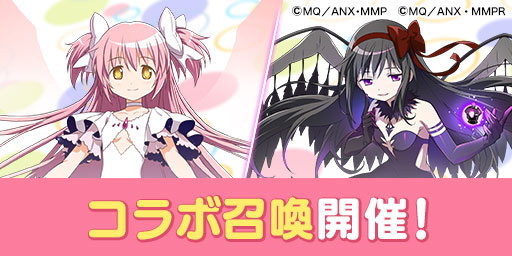 今回のコラボ召喚では「★6 アルティメットまどか」「★6 悪魔ほむら」「★6 鹿目まどか」「★6 暁美ほむら」「★6 魔法少女ハルドラ」「★5 巴マミ」「★5 美樹さやか」「★5 佐倉杏子」「★5 百江なぎさ」が登場します。