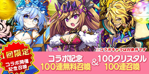 ▼(4) 無料100連召喚&100クリスタル100連召喚の開催