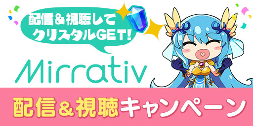 期間中、Mirrativにてエレストの配信や視聴で条件を達成して、クリスタルをGETしましょう。