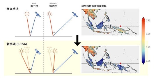 今回考案したS-CSAは、「ひまわり8/9号」の課題であった観測幾何条件の空間的なバイアスを効果的に克服するもので、高精度な植生活動モニタリングを可能にします。さらに、この手法はFY-4A(中国)、GK-2A(韓国)、GOES-16(米国)、など、他国の静止気象衛星にも適用できる汎用性を有しており、アマゾンや中央アフリカなど世界の熱帯地域への展開も期待されます。