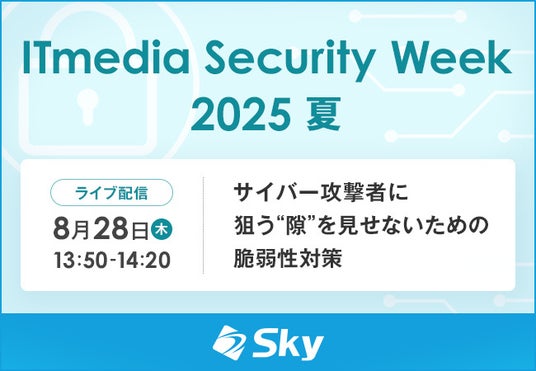 Sky株式会社は、2025年8月25日(月)~9月1日(月)に開催されるライブ配信セミナー「ITmedia Security Week 2025 夏」に協賛いたします。