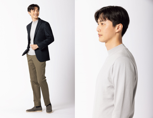 トレンドを反映し従来商品よりもシルエットをゆったりめに変更しながらも、ジャケット着用時にはストレスのないサイズ感が特長。さらに、ジャケットから裾が覗かない着丈やアームホール(肩~脇の下にかけての腕を通す穴)は着用時の余計な布の余りやシワを軽減する等、さらに快適にご着用いただけるよう改良しました。