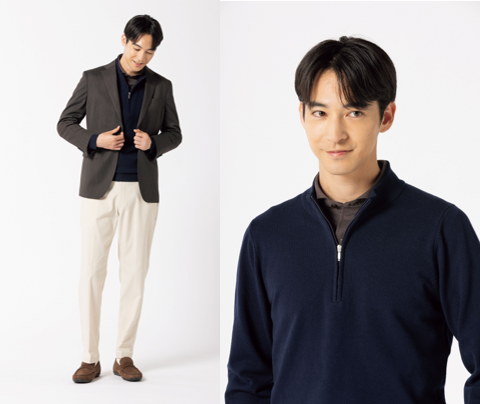 さらに、AOKIの他カジュアルアイテムとの組み合わせも考慮して企画しているため、トータルコーディネートでビジュアルカジュアルスタイルが完成します。
