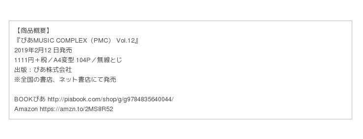 『ぴあMUSIC COMPLEX(PMC) Vol.12』コンテンツ