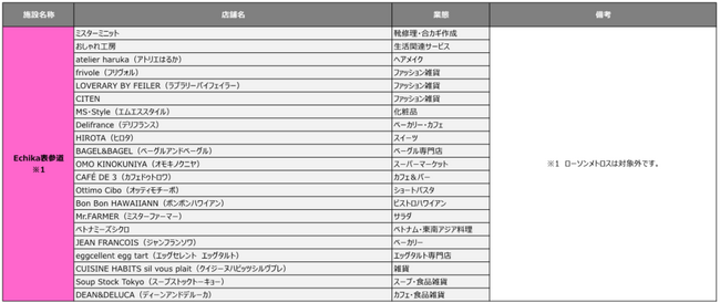 ※対象店舗は別添の「対象施設・対象店舗一覧」をご覧ください。