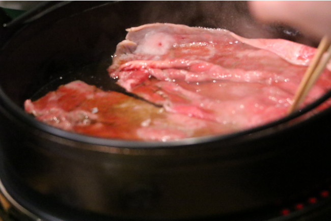 夕食はすき焼きレストランへ。大和牛をおの店ならではの3つの食べ方で頂きます。