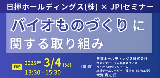 JPI(日本計画研究所)は、日揮ホールディングス株式会社 サステナビリティ協創オフィス 統括チームリーダー 技術士(生物工学) 大渕 貴之 氏を招聘し、バイオものづくりに関する取り組みについて詳説いただくセミナーを開催します。
