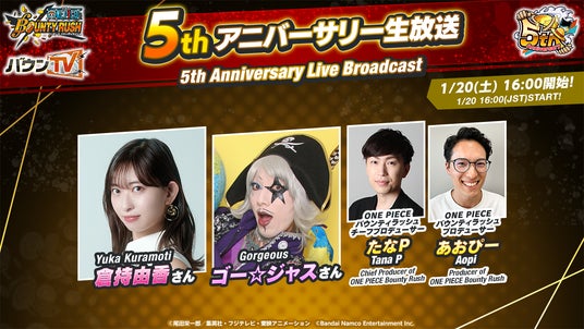 「『ONE PIECE バウンティラッシュ』 5thアニバーサリー生放送」のプレゼントとして、期間中のログインで「虹のダイヤ」を最大合計300個配布中!