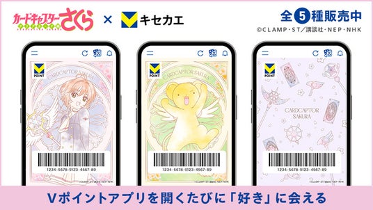 CCCMKホールディングス株式会社(本社:東京都渋谷区、代表取締役社長兼CEO:高橋 誉則)は、Vポイントアプリの「モバイルVカード」を好きなデザインに着せかえできる「Vキセカエ」(https://ip.tsite.jp/guide)において、『カードキャプターさくら』より、メインキャラクターを中心としたデザイン全5種を、2025年4月1日(火)から2026年3月31日(火)まで期間限定で販売いたします。