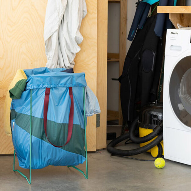 スーザンベルによる、洗濯をより快適にするランドリーバッグ&ラック。丈夫な100%再生リップストップナイロ ンを使用したデザインは巾着と持ち手が付いており、洗濯物を集めて移動する作業を効率的におこなえます。
