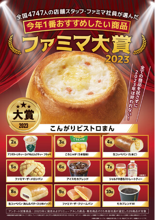 株式会社ファミリーマート(本社:東京都港区、代表取締役社長:細見研介)は、継続して取り組んでいる5つのキーワードである「『あなた』のうれしい」、「わくわく働けるお店」の一環として、全国4,747人の店舗スタッフ・ファミリーマート社員が選んだ今年1番おすすめしたい商品・サービスを決定する「ファミマ大賞2023」を開催いたしました。初めての開催となる「ファミマ大賞2023」において、見事選ばれた大賞と入賞商品・サービスをご紹介いたします。