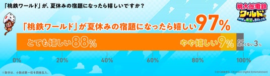 3.97%※2が、「『桃鉄ワールド』が夏休みの宿題になったら嬉しい」と回答(88%が「とても嬉しい」、9%が「やや嬉しい」)