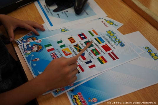 2024年7月、都内の小学校(東京学芸大学附属小金井小学校)にて、「ゲームで国旗を学ぼう!」をテーマとした『桃鉄ワールド』体験イベントを実施しました。イベントには33人の児童が参加し、『桃鉄ワールド』(1年設定)をプレーしたほか、ゲームプレーの前後に2回「国旗クイズ」(各10問ずつ)に回答するなどの課外活動を行いました。