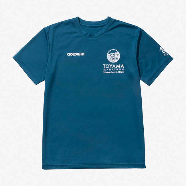 立山連峰や新湊大橋などコースの名所と、田園風景など富山が育む多様な豊かさをスタンプで表現。2023年の大会らしさの1つとして、コロナ渦を経て復活する沿道の声援も描きました。素材には、各地の回収拠点から集めたポリエステルのウエアを石油由来原料と同等品質のポリエステル樹脂にリサイクルした、株式会社JEPLANのBRING Material(TM)を使用。ランナーとともに、持続可能な資源の循環への意識を高めていきます。環境に配慮しながらも、機能面でも優れた吸汗速乾性とUVケア(UPF15-30、紫外線カット率85%以上)機能があります。