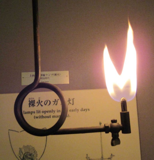 明治時代、新しい調理の熱源として利用が始まったガスの炎。