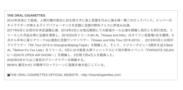 第2章の幕開けとなるステージに懸けたTHE ORAL CIGARETTESの姿をその目で確かめよう。