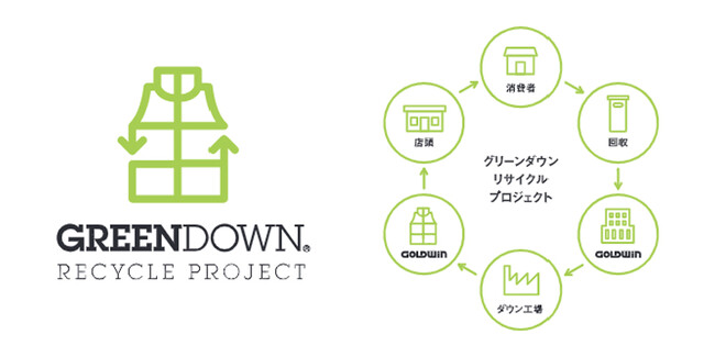グリーンダウンリサイクルプロジェクトは、限りある資源であるダウン(羽毛)を回収、精製し、「グリーンダウン」という名前で、ダウンウエアをはじめとする新たな製品の原料として利用するプロジェクト。ダウンを焼却する際に発生する二酸化炭素(ダウン1kgで約1.8kgの二酸化炭素を排出)と、原産国から日本に送られる際の二酸化炭素を抑えられます。