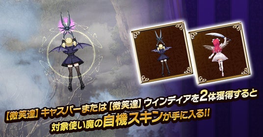 「【微笑達】ウィンディア」「【微笑達】キャスパー」は、それぞれ出現するガチャの開催期間中に2体獲得することで、対象キャラクターの自機スキンを手に入れることができます。