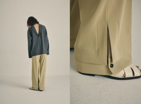 Hidden detail curve jacket ¥66,000(tax in) Hidden detail wide pants ¥38,500(tax in)