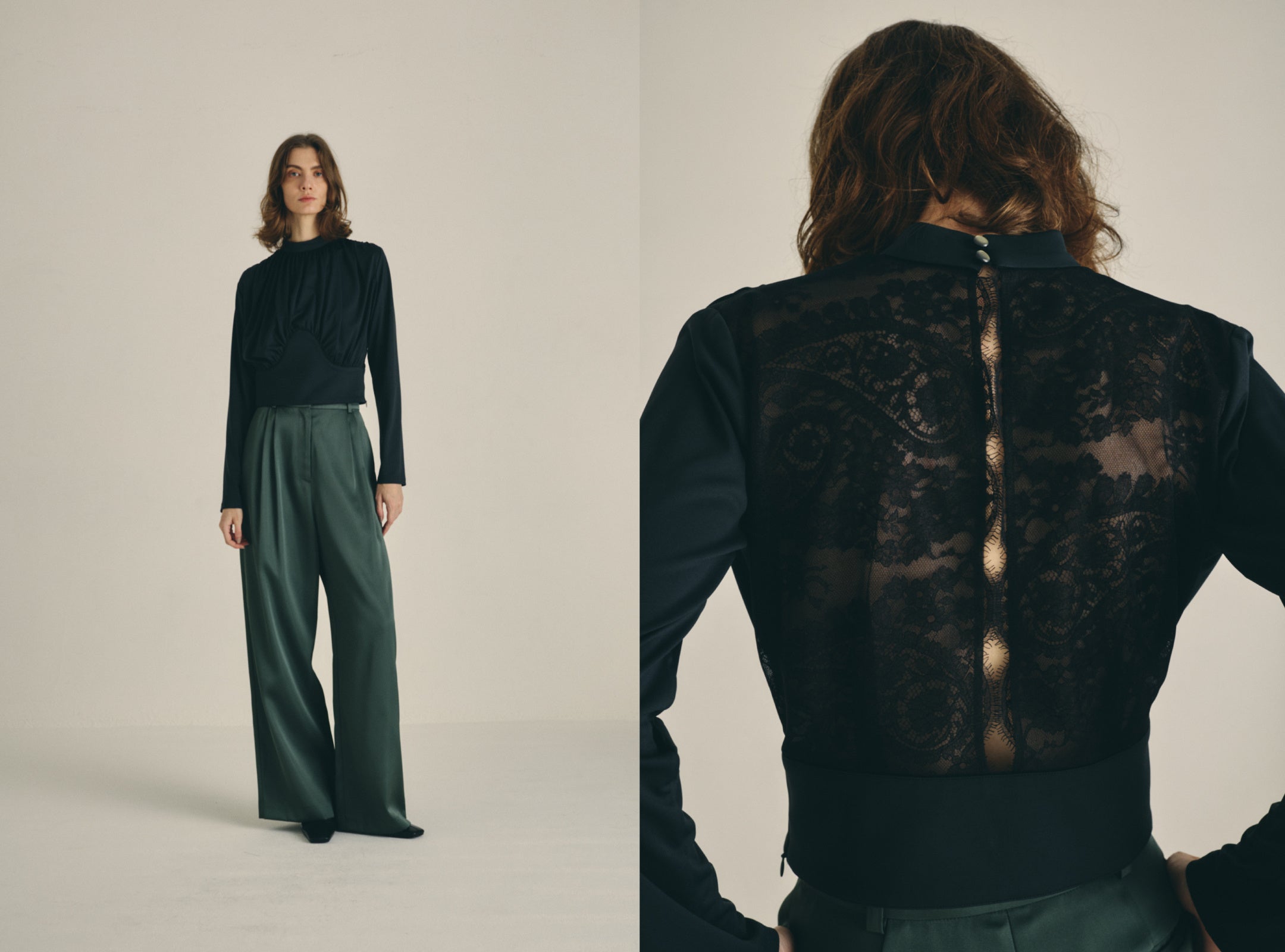 Hidden detail drape tops ¥39,600(tax in) Hidden detail wide pants ¥38,500(tax in)