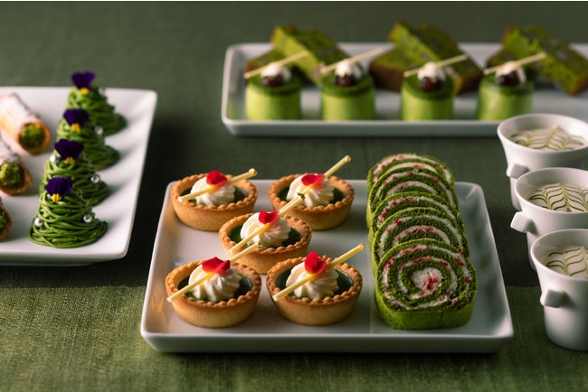 抹茶スイーツには、抹茶香るしっとりしたスポンジで軽いホイップクリームを巻き上げ、甘酸っぱいフリーズドライのイチゴをアクセントにした「抹茶とイチゴのロールケーキ」や、ヴァニラアイスクリームと奥深い苦みの温かい抹茶が織り成す絶妙なハーモニーが魅力の「アフォガード」、白餡を混ぜ込み、なめらかな舌触りに仕上げた抹茶クリームを味わえる「抹茶のモンブラン」をご用意。