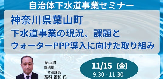 JPI(日本計画研究所)は、葉山町 環境部 下水道課長 藁科 義和 氏を招聘し、下水道事業の現況、課題とウォーターPPP導入に向けた取り組みについて詳説いただくセミナーを開催します。