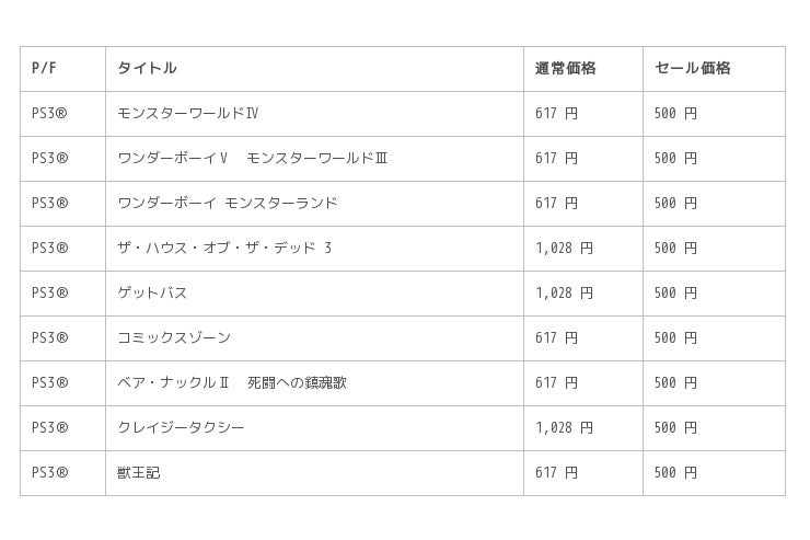 その他、往年の名作から最新タイトルまで、あらゆるジャンルのゲームをお得な価格にて販売します。販売期間は 3 週間の期間限定ですので、この機会をお見逃しなく。春休みはぜひ、セガタイトルでお楽しみ下さい。