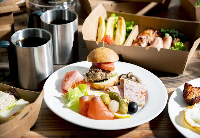 白馬の自然を感じられるプライベートテント席で、愛犬とバスケットスタイルのご朝食をお楽しみいただける“朝ピクニック”プラン。信州ならではの味覚をふんだんに取り入れてご用意するメニューでは、見た目にも可愛らしいスライダーバーガーやサニーサイドアップなどもお楽しみいただけます。清々しい朝の風を感じながら、愛犬と充実のモーニングタイムをお過ごしください。