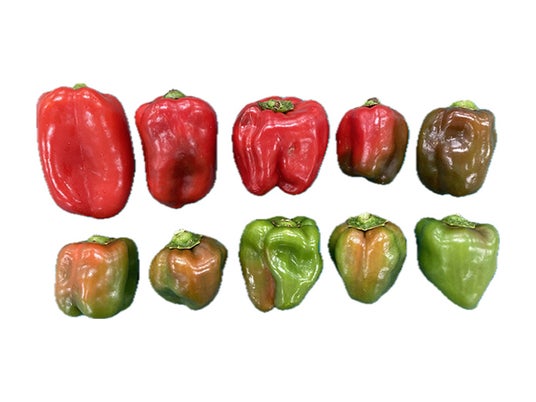 もみじ色ピーマン さまざまな変色の程度