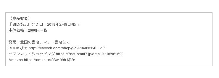 また、本書の発売を記念したイベント「プレミアムトークショー&『SIDぴあ』お渡し会」を2月11日(月・祝)にHMV&BOOKS SHIBUYAにて、500名限定で開催。応募即定員に達したことを受け、当日会場では、本書掲載の写真のパネル展示を決定。パネル展はどなたでもご来場いただけます。