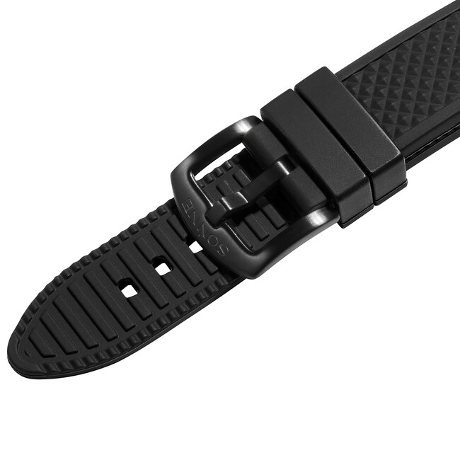また、ストラップは、レザーベルトの裏面にラバーを圧着させたハイブリッドベルトを採用。汗に強く、丈夫でストレスフリーです。フェイスカラーは、ネイビー、グリーン、ブラックの3種類。価格はネイビーが29,700円(税込)、グリーンとブラックが30,250円(税込)となります。