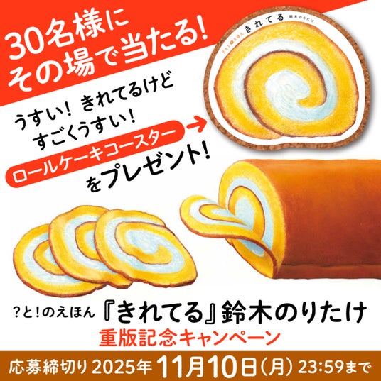 10月の発売後、即重版がかかったことを記念し、絵本にちなんだコースターが抽選で30名様に当たるプレゼントキャンペーンを開催中。