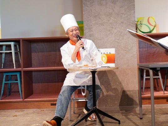 トークライブのあとは、絵本のモチーフのロールケーキにちなみ、ロールケーキが食べられる美味しいパーティーを開催。株式会社モンシェール様のご協力により、1日に1万本売れたこともあるという「堂島ロール」との特別コラボが実現しました。