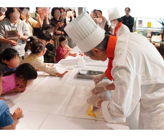 切り分けられるのを今か今かと待ち受ける子どもたちの様子に、パティシエとなったのりたけさんの顔にも笑みがこぼれます。